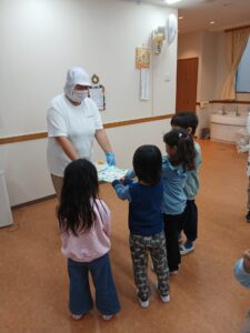 パシフィックステージにも、避難訓練でお邪魔したり、ハロウィンでお菓子をもらったり、お庭をお借りして畑をしたり、遊んだりしているので感謝のプレゼントをしました!