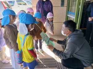 パシフィックステージにも、避難訓練でお邪魔したり、ハロウィンでお菓子をもらったり、お庭をお借りして畑をしたり、遊んだりしているので感謝のプレゼントをしました!